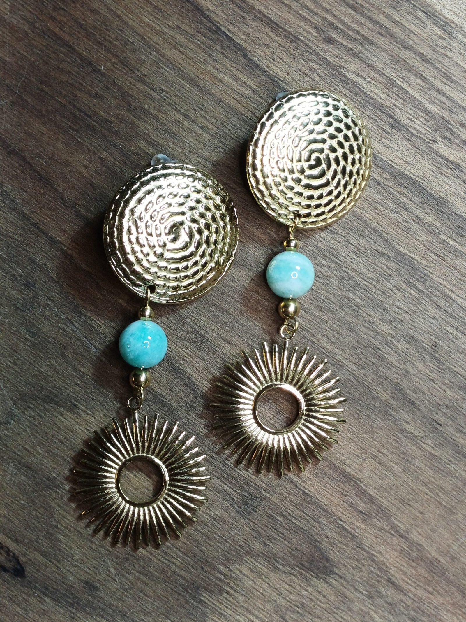 Ces boucles d’oreilles dorées en acier inoxydable avec une perle d’Amazonite sont conçues pour compléter une variété de styles vestimentaires. Que ce soit pour une tenue décontractée ou une tenue sophistiquée, leur design polyvalent en fait un choix facile à intégrer dans votre collection de bijoux personnels. Le contraste entre le doré rayonnant et la douceur apaisante de l’Amazonite crée un équilibre parfait entre luxe et simplicité.