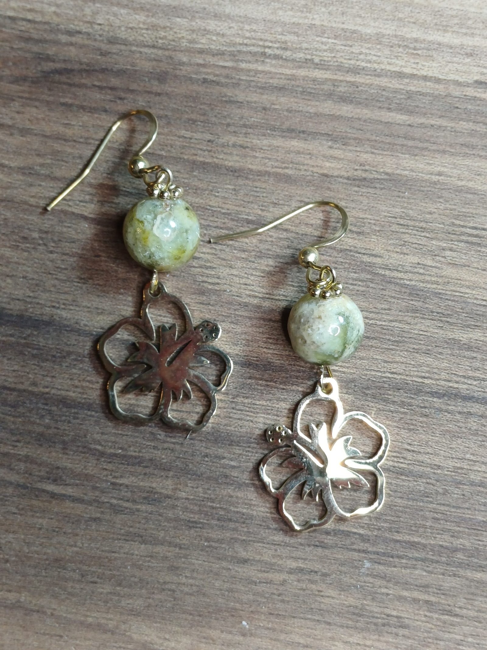 Boucles d’oreilles acier inox inoxydable doré et perle de Grenat Vert