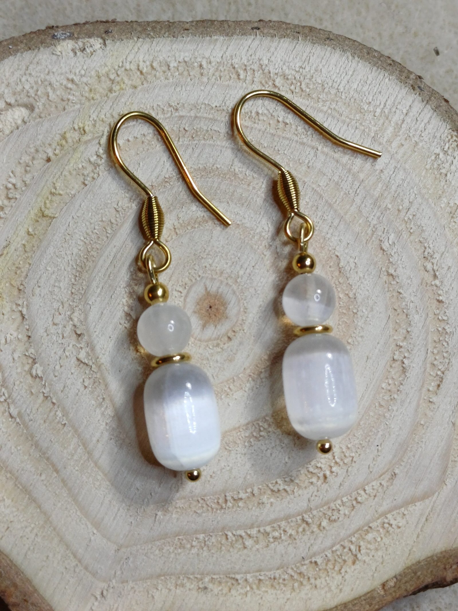 Boucles d’oreilles en acier inoxydable doré avec perles de Sélénite