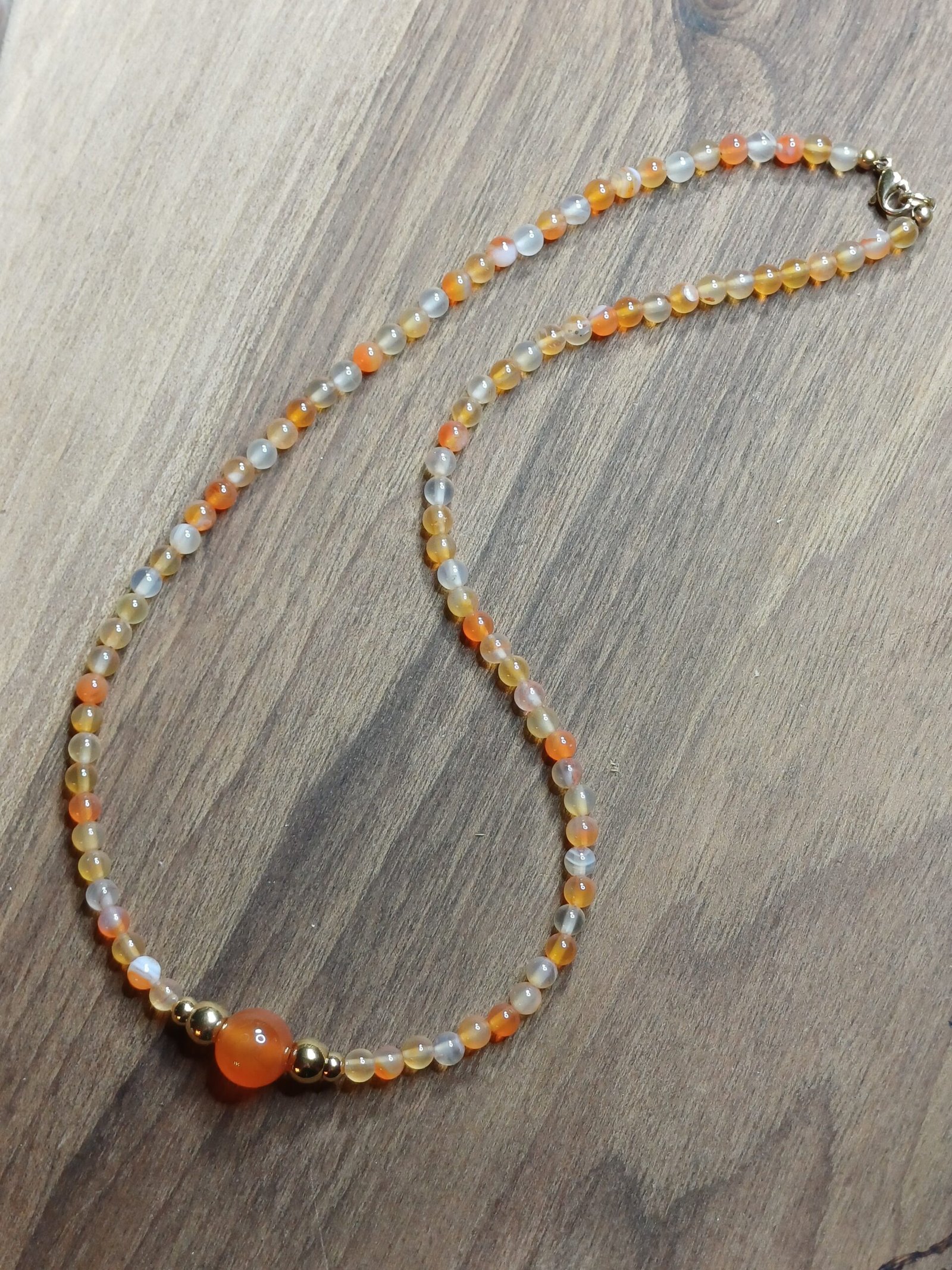 Ce collier se distingue par sa combinaison parfaite de la Cornaline naturelle et de l’acier inoxydable doré. Les perles de Cornaline de 4 mm captivent par leur éclat naturel, tandis que l’acier inoxydable doré garantit une résistance exceptionnelle à l’usure et à la corrosion. Pensé pour un usage quotidien, ce bijou combine délicatesse et solidité, ce qui permet de profiter de son charme pendant de nombreuses années sans craindre qu’il perde sa qualité ou son éclat.