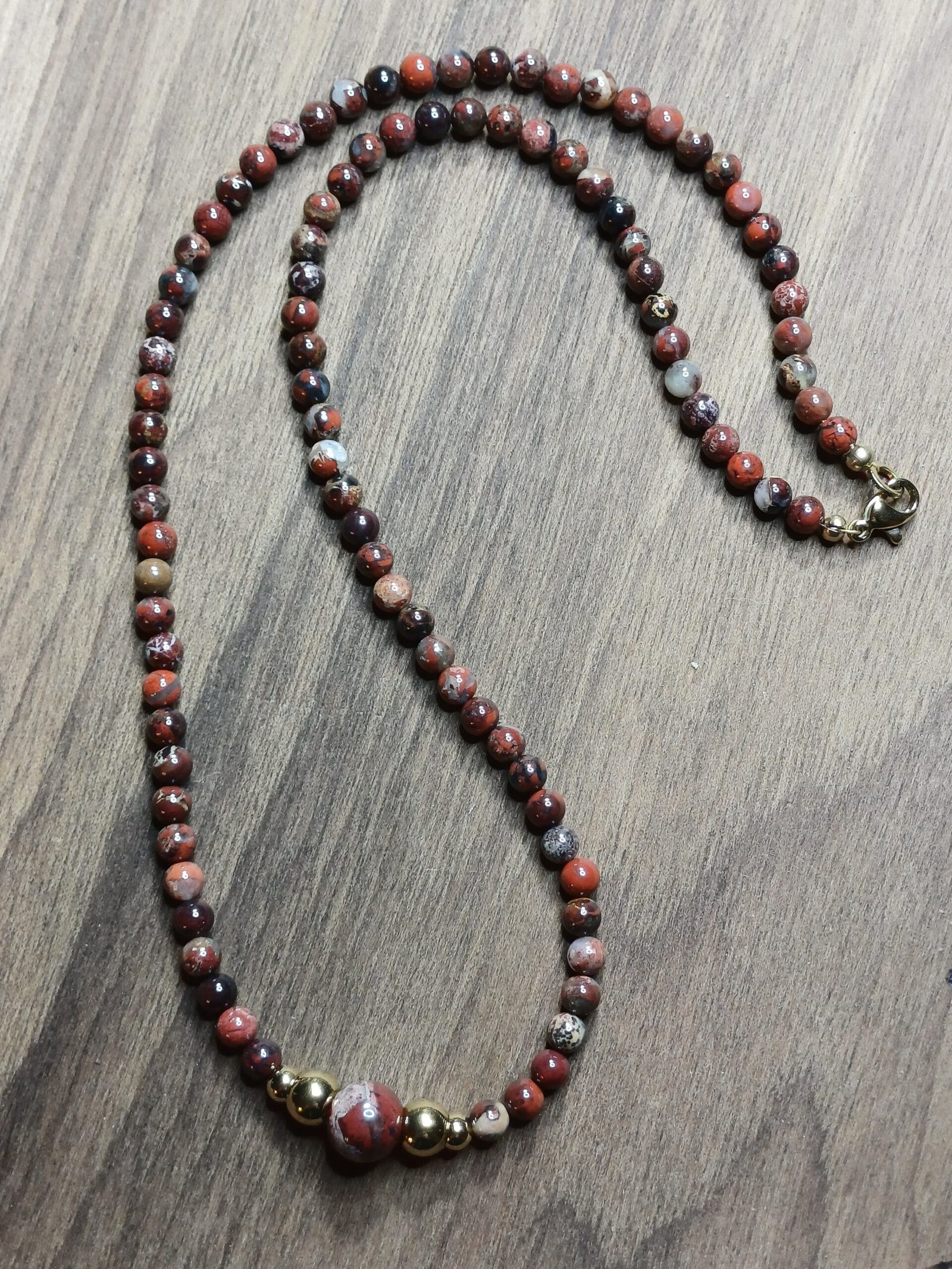 Ajoutez une touche de raffinement et de sophistication à votre collection de bijoux avec notre magnifique collier de jaspe en perle de 4 mm et acier inoxydable doré. Ce bijou est conçu pour ceux qui cherchent à allier style et durabilité dans un accessoire unique. Les pierres de jaspe sont connues pour leurs propriétés apaisantes et leur beauté naturelle, et elles s’associent parfaitement au fini doré de l’acier inoxydable pour offrir une allure intemporelle. Ce collier est idéal pour compléter vos tenues, qu’elles soient décontractées ou élégantes.